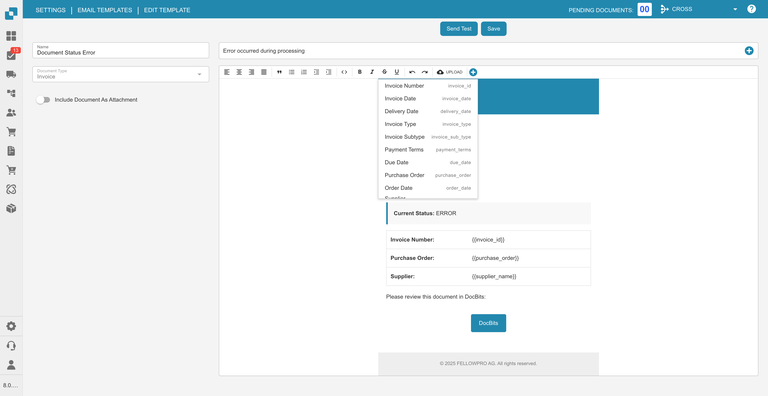 One highlight is the redesigned email template editor. Thanks to a clearer structure and more intuitive operation, creating professional templates is now even easier. Document fields can be inserted much more conveniently, attachments can be integrated directly, and the entire user experience feels smoother. This allows you to create customized emails in significantly less time.