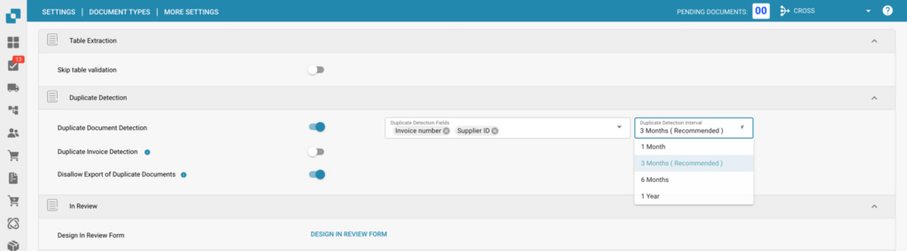 Duplicate detection has also been significantly expanded. You can now specify the time period within which documents are checked for possible duplicates. In addition, detected duplicates can be automatically excluded from export. This means greater control over your data quality and reliable protection against incorrect outputs.